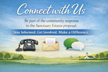 Connect with us to support community efforts in opposition of the Sanctuary Estates proposal.
