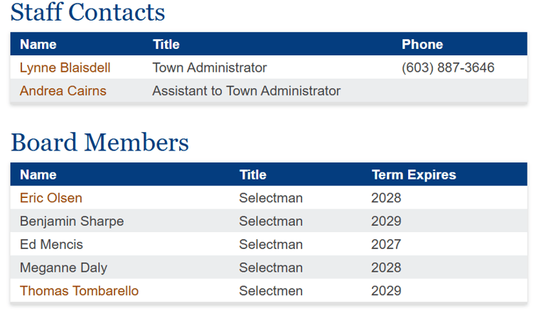 Contact the Board of Selectmen